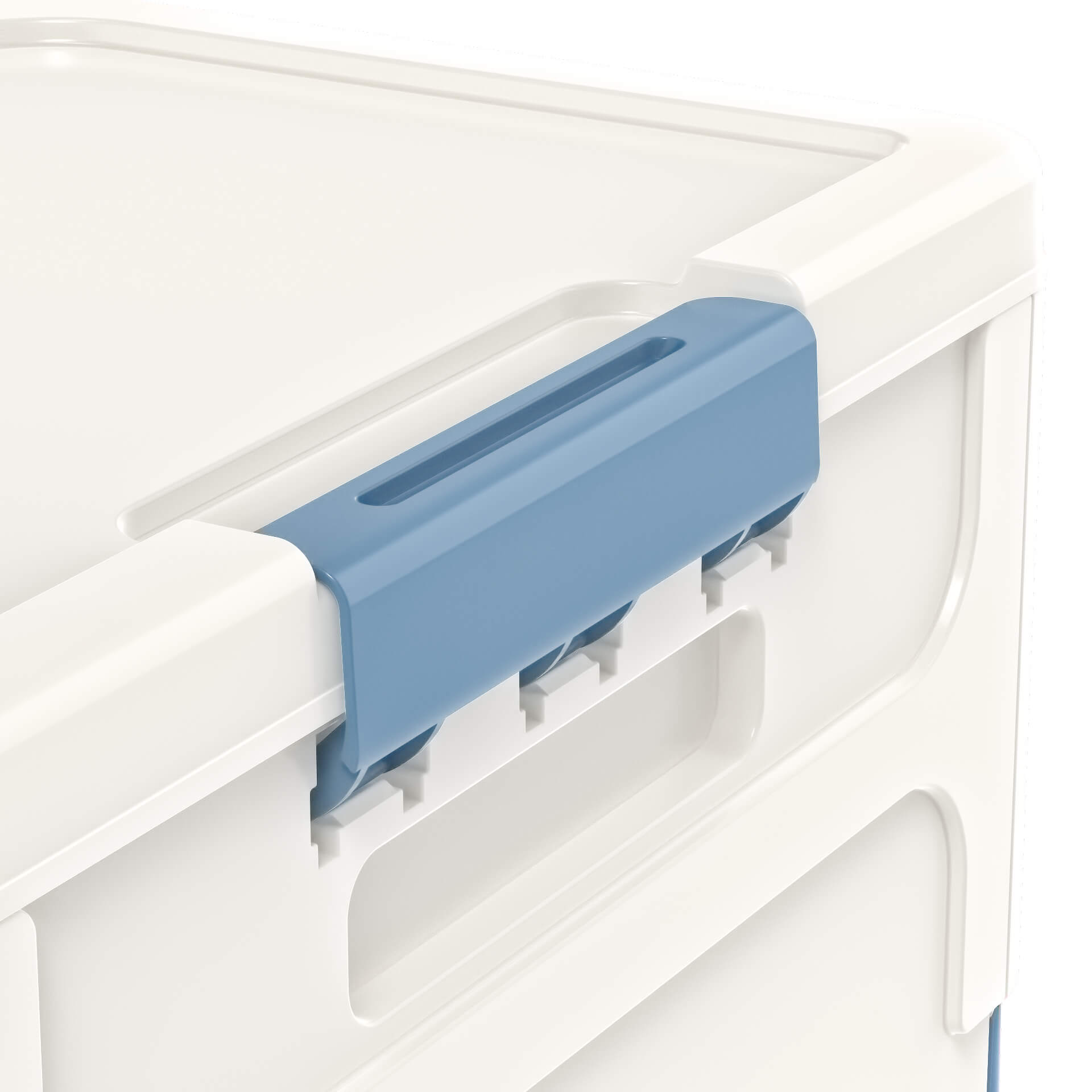 Этот пластиковый складной ящик сочетает в себе прочность, функциональность и современный дизайн. Белые стенки придают ощущение чистоты и простора, а синее дно добавляет глубины и элегантности, создавая гармоничное сочетание. Пластиковый контейнер идеально подходит для хранения одежды, игрушек, документов, мелочей и бытовых принадлежностей.